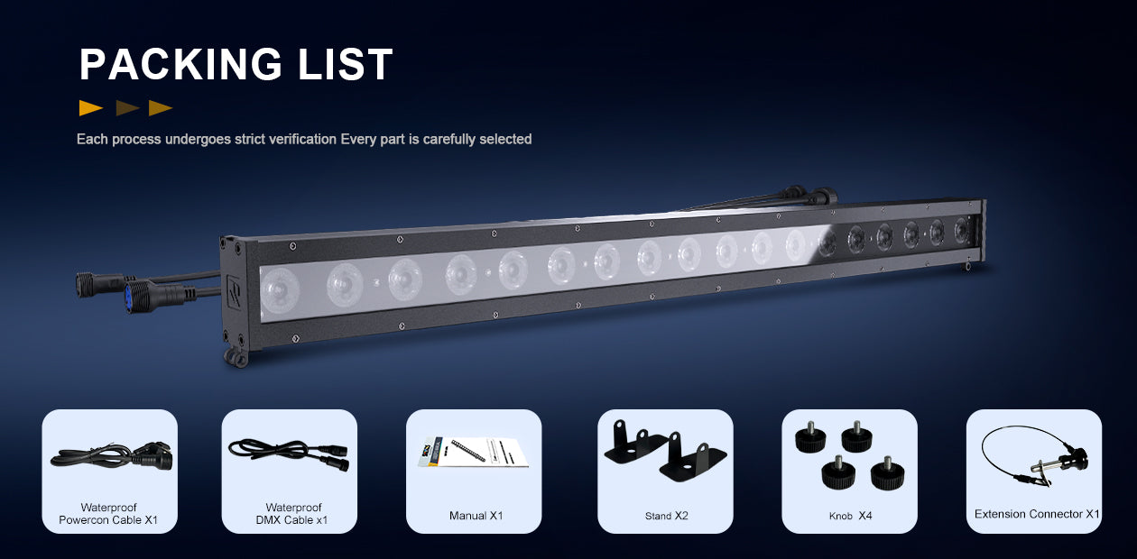Le projecteur wall washer de scène prend en charge une installation par assemblage horizontal ou vertical, ce qui vous offre une plus grande commodité pour l’agencement du décor lumineux.