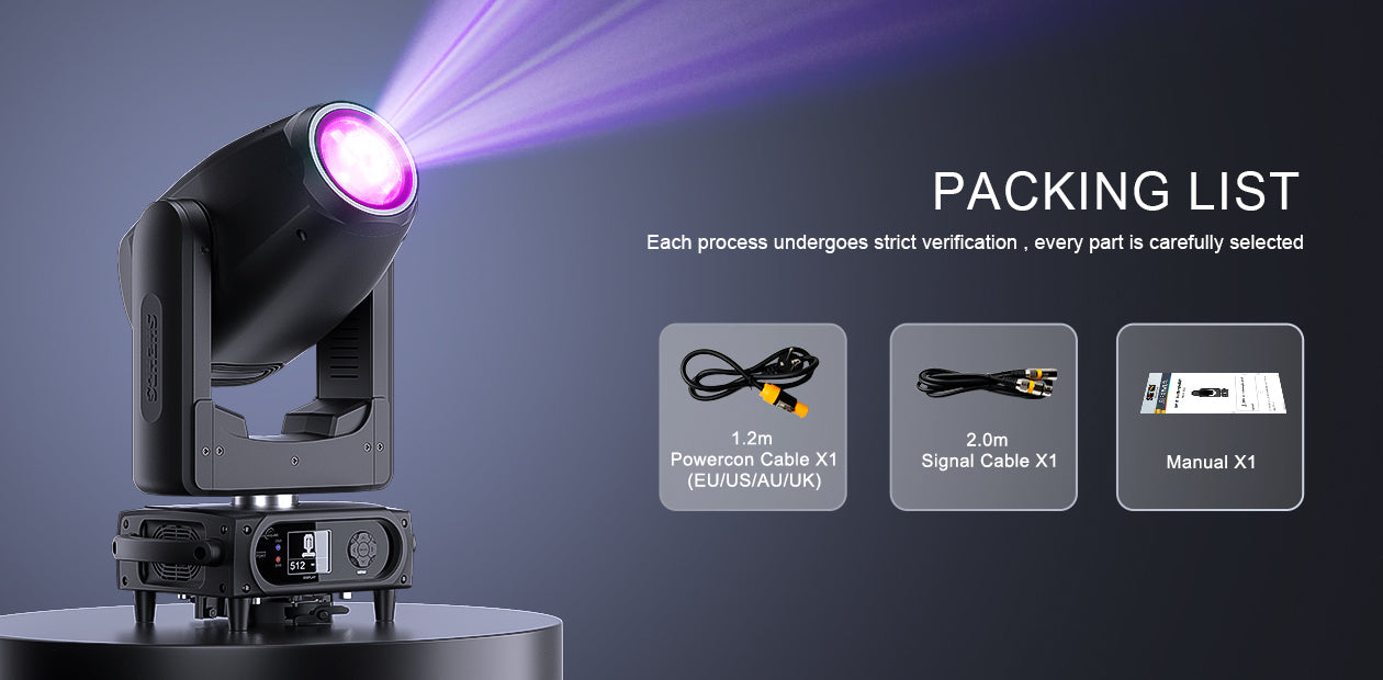 Le module LED à haute luminosité, le mécanisme de mouvement flexible et la conception optique précise améliorent non seulement le professionnalisme et l’aspect artistique de l’éclairage scénique 3-en-1 avec un angle de faisceau de 2°, mais offrent également un espace d’expression plus large et de nombreuses possibilités créatives pour les créateurs de performances.