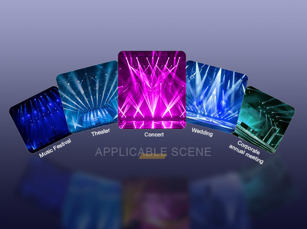 Cette lampe convient non seulement aux grandes performances scéniques telles que les théâtres professionnels, les concerts et les spectacles, mais également à diverses occasions comme les mariages, les réunions annuelles d’entreprise, les lancements de produits, etc. Son faisceau puissant, sa grande flexibilité de réglage, sa haute luminosité et sa capacité d’éclairage à longue distance permettent d’obtenir les meilleurs résultats dans différents contextes, apportant une touche lumineuse et colorée à vos événements.