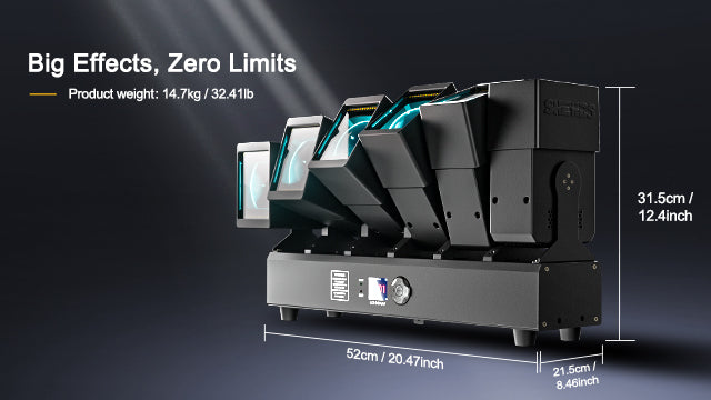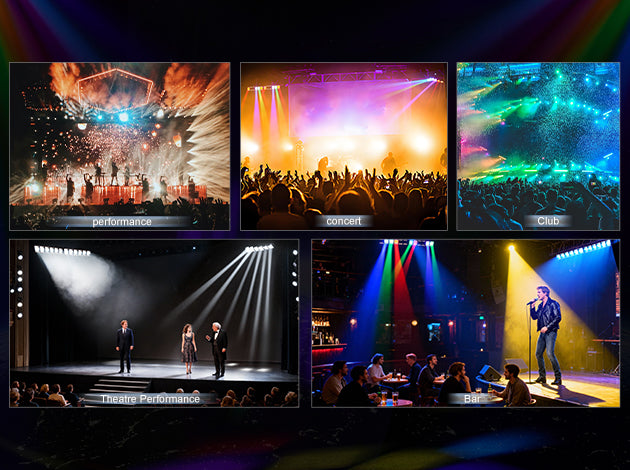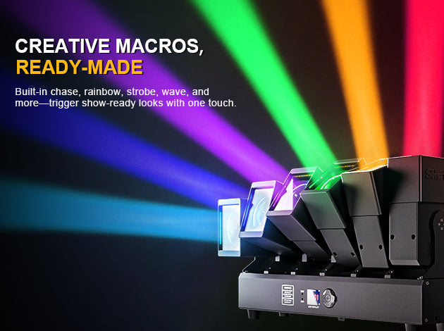 Effets intégrés de poursuite, arc-en-ciel, stroboscopique, onde et bien plus, déclenchez des configurations prêtes pour le spectacle en un seul geste.