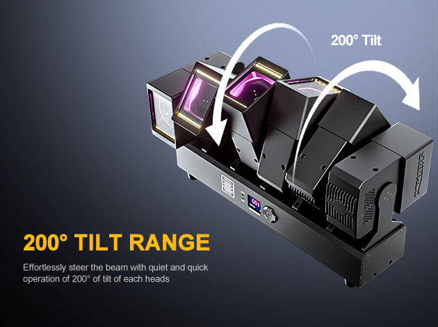 Dirigez facilement le faisceau grâce au fonctionnement silencieux et rapide de l'inclinaison de 200° de chaque tête mobile