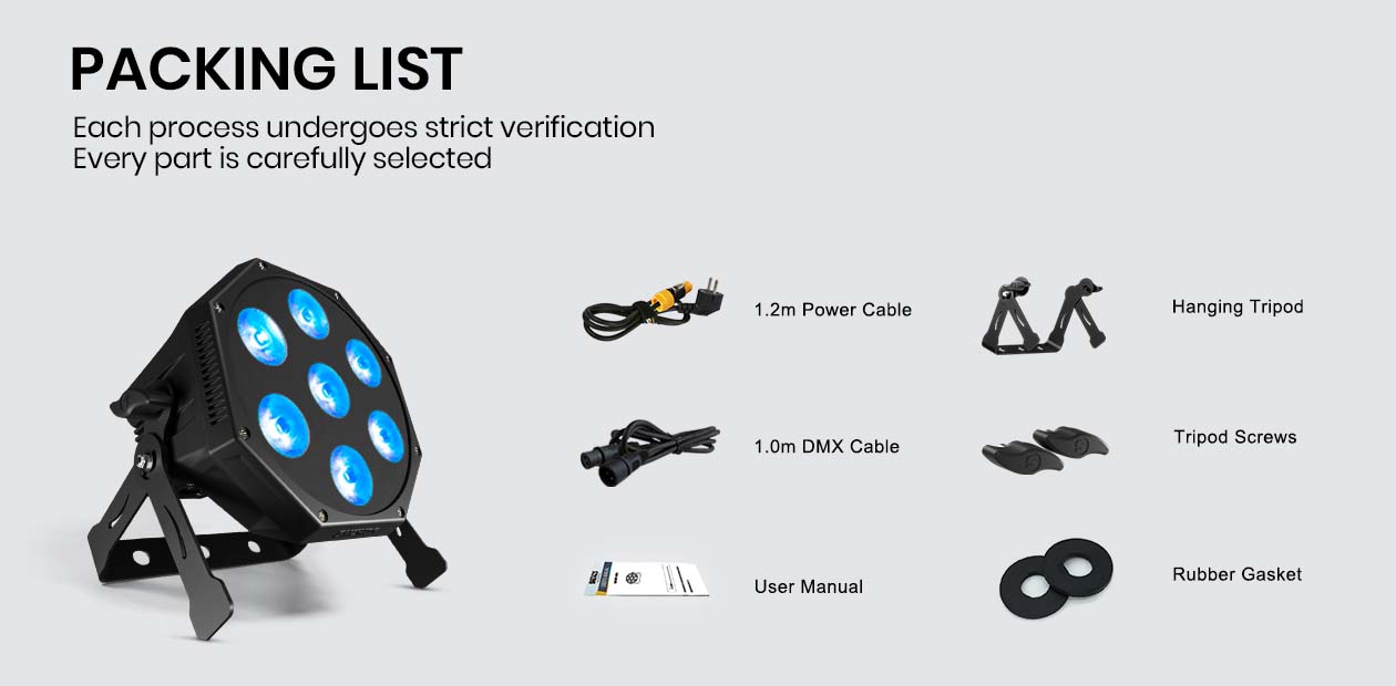 Nous proposons plusieurs options de la même apparence mais de couleurs différentes pour cette série de projecteurs PAR afin de répondre à différents styles de performance et à des besoins personnalisés.