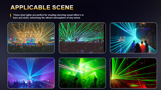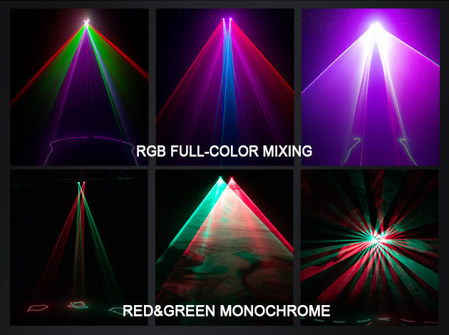 Les lasers effectuent un balayage alterné pour former des motifs dynamiques et changent de couleur en fonction du rythme de la musique. Après mélange, la couverture du gamut colorimétrique est élevée, permettant de produire des effets visuels vifs et saisissants.