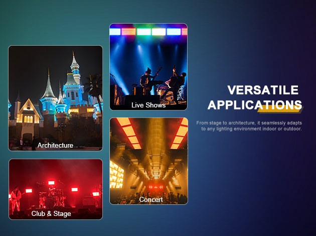 Idéal pour les concerts, les boîtes de nuit, les performances DJ et les spectacles de scène dynamiques, ce panneau de stroboscope offre un impact visuel puissant pour toutes les scènes de divertissement à haute énergie.