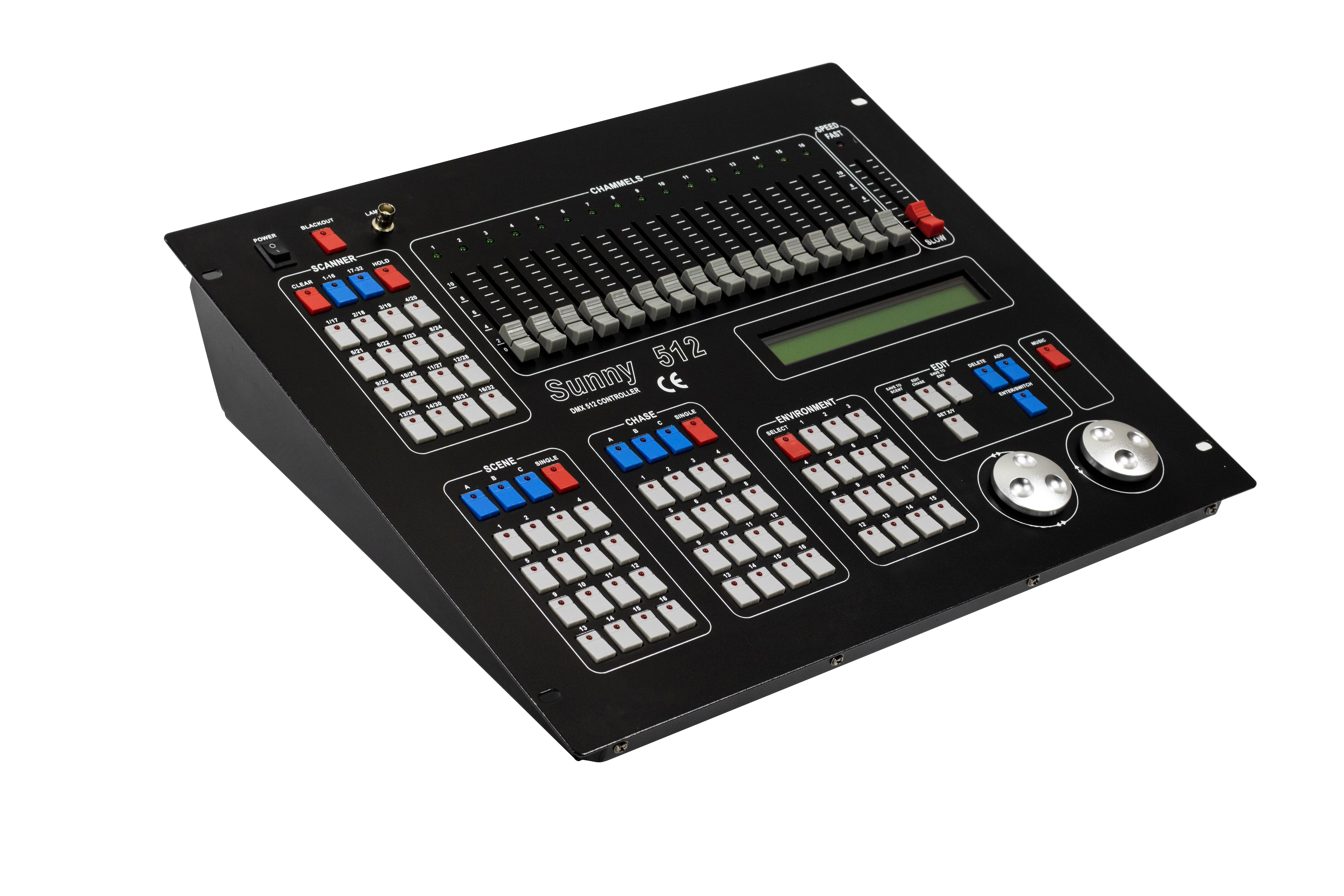 Le grand écran LCD rétroéclairé affiche la majorité des opérations. 16 curseurs pour les canaux, 1 curseur pour le contrôle de la vitesse.